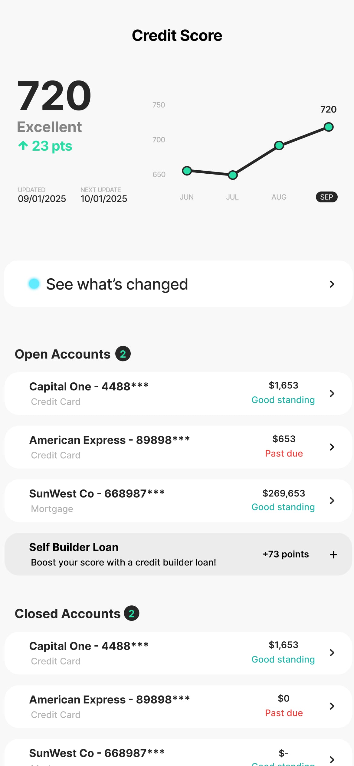Track every payment added, every history built, every point gained